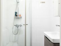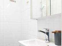 - Varusteet: allaskaappi, peilikaappi, suihkuseinä, lattialämmitys. Kompakti kylpyhuone missä mahdollisuus pesukoneeseen
