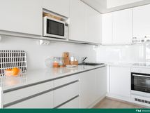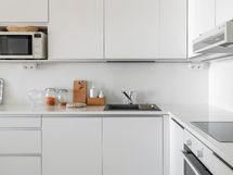 - Jääkaappipakastin x 2, kalustepeitteinen astianpesukone, keraaminen liesitaso, erillisuuni, liesikupu, paikka mikroaaltouunille, välitilalasi, kiinteät valaisimet, runsaasti säilytys- ja työskentelytilaa