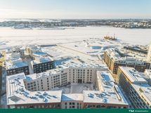 - puistomaiset, pihalle, merelle, Makuuhuoneet sisäpihalle, keittiö, olohuone ja parveke meren puolella. Näkymä tulee muuttumaan Saukonkanavan rakentamisen myötä