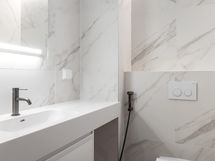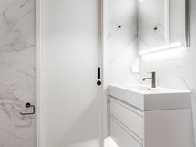 - Kylpyhuoneissa ja wc-tiloissa on allas, allaskaappi, peilikaappi, pohjapiirustuksissa esitetyt kalusteet sekä suihkuseinä (mikäli esitetty pohjapiirustuksessa).