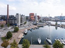 - Kulmahuoneisto, josta näkymä sisäpihalle sekä etelään merelliseen Hietalahdenrantaan.