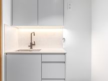 - Keittiöt varustetaan induktioliesitasolla, kiertoilmauunilla ja mikroaaltouunilla tai yhdistelmäuunilla, astianpesukoneella, jää- ja pakastinkaapeilla tai jää-pakastinyhdistelmäkaapilla (2h+k ja sitä pienemmät huoneistot) ja aktiivihiilisuodattimella tai liesikuvulla varustetulla liesituulettimella (muut pois lukien saarekkeeseen integroituja).