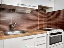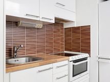 - Jääkaappi/pakastin, keraaminen liesi, liesikupu/-tuuletin, kaapistot, astianpesukone