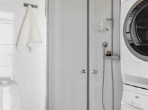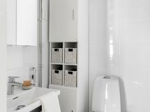 - Pesutilojen kuvaus: Kylpyhuoneessa suihku, kääntyvät suihkuseinät, pesukoneliitäntä, paikka pesutornille, lattialämmitys, peilikaappi, kiinteät valaisimet, lavuaarikaapisto, pyyhekuivain ja wc. Lattialämmitys sähköllä. Erillisen WC:n kuvaus: Peili, lavuaarikaapisto.