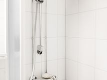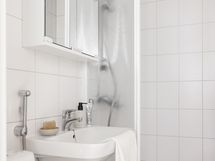 Tilava kylpyhuone pesukoneliitännällä lisää arjen helppoutta. Kylpyhuoneesta on pidetty erityisen hyvää huolta: syksyllä 2025 uusitut laattasaumat ja silikonisaumat, laattojen nanopinnoitus sekä kopolaattojen injektointi takaavat huolettomuutta ja siistin ilmeen pitkälle tulevaisuuteen.