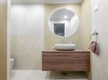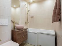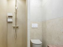 - Suihku, Kylpyamme, Vesikiertoinen lattialämmitys, Kaapisto, Allas, WC-istuin, Peili