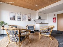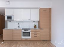 - Keittiön varusteet: Jääkaappipakastin, erillisuuni, mikroaaltouuni, liesi, astianpesukone ja liesituuletin. Liesi: Induktioliesi. Työtason materiaali: Laminaatti.