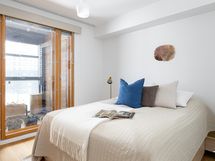 - Muuta kauppaan kuuluvaa: Sälekaihtimet, makuuhuoneiden vaatekaapit sekä rullapimennysverhot. Parvekkeen lasituksien kaihtimet, eteisen kenkäkaappi ja eteismatto.