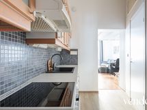 - Keittiön varusteet: Jääkaappipakastin, uuni, liesituuletin ja astianpesukone. Liesi: Keraaminen liesi. Työtason materiaali: Laminaatti.