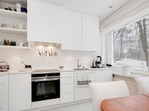 - Tilaa isolle ruokapöydälle, Paljon kaappitilaa, Paljon työskentelytilaa, Halogeenivalot, Astianpesukone, Integroidut koneet, Liesi tai uuni erikseen, Induktioliesi, Jää-pakastinkaappi