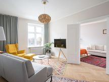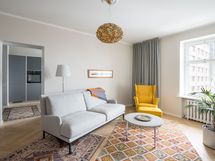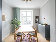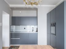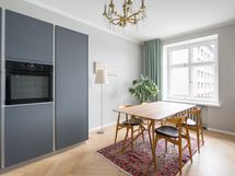 - Tilava erillinen keittiö, jossa KVIKin harmaat kaapistot ja kivitasot. Keittiössä on Boschin keraaminen liesi sekä integroidut astianpesukone ja jääkaappi/pakastin. AEG kalusteuuni on sijoitettu ergonomisesti työskentelykorkeudelle. Keittiössä on hyvin tilaa ruokapöydälle ja ikkunasta voi seurata Mannerheimintien liikennettä.