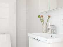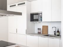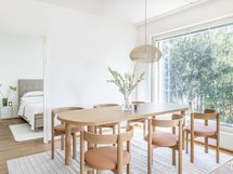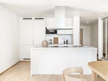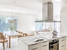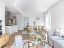 Tilava avokeittiön, ruokailutilan ja olohuoneen yhdistelmä on kodin sydän. Asunnon koko