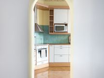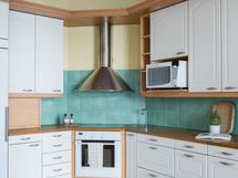 - Parkettilattia, maalatut seinät. Laminaattitasot, välitila laattaa. Vaaleat keittiökaapistot. Liesi, liesituuletin, uuni, jääkaappi, pakastin ja astianpesukone. Pesukoneliitäntä, tilaa pyykinpesukoneelle. Käynti parvekkeelle.