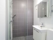 - Suihku, Pesukoneliitäntä, Mukavuuslattialämmitys, Tilaa pesukoneelle, Käsisuihku, Kaapisto, Allas, Suihkuseinä, WC-istuin, Peilikaappi