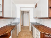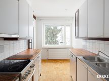 - Keittiön varusteet: Jääkaappipakastin, uuni, astianpesukone, liesi ja liesituuletin. Liesi: Keraaminen liesi. Työtason materiaali: Puu. Toimiva keittiö, missä runsaasti kaappi- ja laskutilaa. Keittiöön mahtuu pieni ruokapöytä. Isompi ruokapöytä mahtuu mukavasti olohuoneeseen. Kivat avarat piha-katunäkymät.