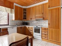 - Kaapistot, jääkaappi, pakastekaappi, keraaminen liesi, uuni, liesituuletin/ aktiivihiilisuodatin. Yksiössä liesi, liesituuletin ja astianpesukone.