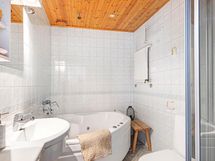 - Kylpyhuone: poreamme, suihku, suihkukaappi, peilikaappi, allaskaappi, patteri, oskarinoksa, wc-istuin. Erillinen wc: pesuallas, peilikaappi
