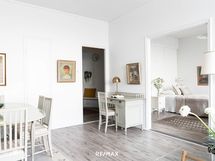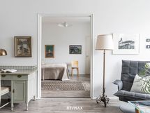 - Lisätietoja säilytystiloista: Asunnossa alkuperäiset seinään upotetetut komerot eteisessä. Tilaa säilytyskalusteille.