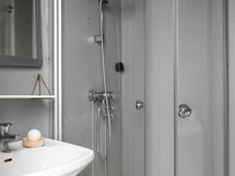 - Pesutilojen kuvaus: Suihkunurkkaus taittuvalla ovella. Tilaa pesukoneelle. Pyyhekuivain.