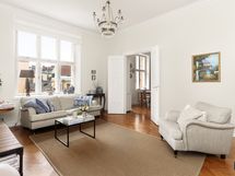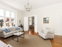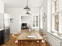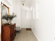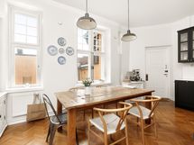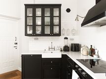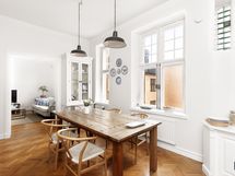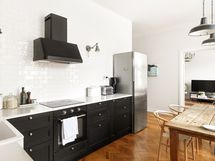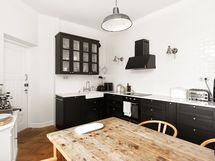 - Keittiön varusteet: Astianpesukone, jääkaappipakastin, liesituuletin, uuni ja liesi. Liesi: Induktioliesi. Työtason materiaali: Kvartsikomposiitti.