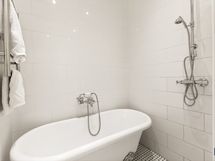 - Pesutilojen varusteet: WC-istuin, suihku, kylpyamme, pesukoneliitäntä, peili ja pyyhekuivain. Pesutilojen kuvaus: kaapisto.