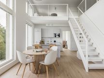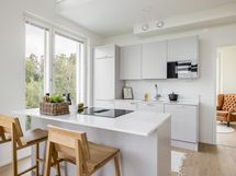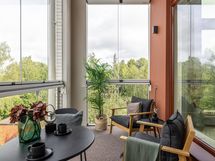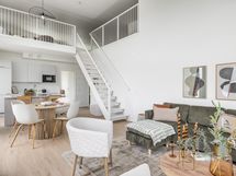 Tämä ylimmänkerroksen upea parvikolmio 71m2 + Parvi 41m2 on täynnä asumisen ylellisyyksiä: suuret, lähes lattiasta kattoon ulottuvat ikkunat antavat reilusti valoa asuntoon, jossa nautit hulppeasta 4,5 metrin huonekorkeudesta sekä viihtyisästä oleskeluparvesta. Avara olohuone jatkuu tilavalle lasitetulle länsiparvekkeelle, jossa kelpaa nauttia kesäpäivistä. Asunnossa on upea lasiseinäinen sauna pilarikiukaalla, missä viihdyt mukavissa löylyissä. Taloyhtiöstä löytyy myös yhteinen suurempi saunaosasto, iso kerhotila, pesutupa sekä A-energialuokka ja omat aurinkopaneelit katolla.