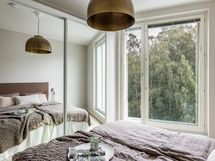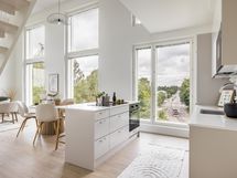 - Lähes lattiasta kattoon ulottuvat ikkunat