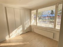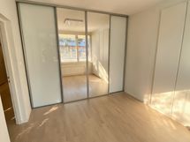 - Makuuhuoneessa on huoneen levyinen liukupeiliovikokonaisuus (4 liukuovea), joiden takana on runsaasti säilytystilaa. Lisäksi toisessa seinässä on integroitu kaapisto, jossa on lisäsäilytystilaa.