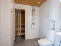 Makuuhuone on erillinen ja rauhallinen, ja sinne mahtuu hyvin sänky sekä säilytystilaa. Sisäänkäynnin yhteydessä on eteinen, jonka yhteyteen sijoittuvat kylpyhuone ja oma sauna. Säilytystilaa on myös eteisessä. Pohjaratkaisu on käytännöllinen ja neliöt on hyödynnetty tehokkaasti arjen tarpeisiin.