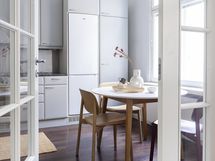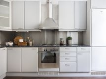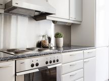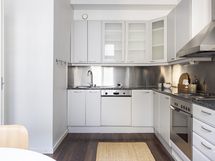 Kylmäsäilytys: jääkaappi/pakastin. Varustus: liesikupu, astianpesukone.