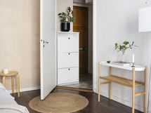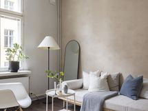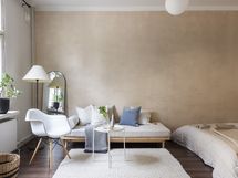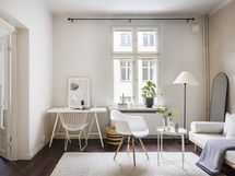 Suuret ikkunat tulvivat luonnonvaloa sisään, ja tyylikäs lasiovi jatkaa valon kulkua huoneiden välillä. Asunnon sävymaailma on lämmin ja neutraali, tämä luo huoneistoon rauhoittavaa harmoniaa. Erillinen WC ja suihkutila sujuvoittavat arkea.