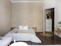 Viehättävä kolmannen kerroksen huoneisto myynnissä Kluuvin Vuorikadun arvostetusta kiinteistöstä. Tässä kodissa yhdistyvät moderni kaupunkiasuminen ja 1900-luvun alun historia. Neliöitä on yhden huoneen huoneistolle poikkeuksellisen paljon ja korkea huonekorkeus lisää tilantuntua. Asunnossa on avara olohuone sekä reilunkokoinen keittiö, jossa on tilaa ruokapöydälle.