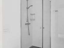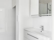 - Suihku, kääntyvät suihkuseinät, lavuaari, peilikaappi, allaskaappi, pyykkikaappi, pesukoneliitäntä, wc-istuin, mukavuuslattialämmitys.