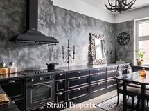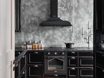 Integroitu astianpesukone, induktiotaso, kiertoilmauuni, Smegin näyttävä liesituuletin.