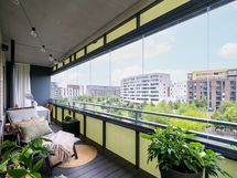 - Koko asuntoa kiertävä 30m2 lasitettu parveke