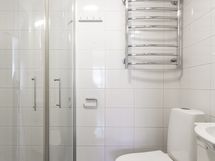 - Suihku, Suihkuseinä, Pesukonevalmius, Rättipatteri, Laattalattia, Laattaseinä, Allaskaappi