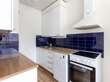 - Laminaattitasot, Paljon kaappitilaa, Astianpesukone, Keraaminen liesi, Liesituuletin, Jää-pakastinkaappi