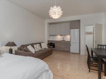 - Keittiön varusteet: Jääkaappipakastin, liesi (Bosch), liesituuletin (Bosch) ja uuni (AEG yhdistelmäuuni, mikroaaltotoiminto samassa). Liesi: Induktioliesi. Työtason materiaali: Laminaatti. Kvik keittiö, uusittu 2018.