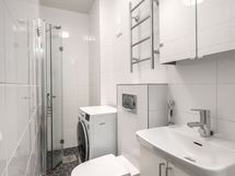 - Pesutilojen varusteet: WC-istuin, suihku, suihkuseinä, pesukoneliitäntä, peilikaappi, pesuallas, allaskaappi, bidee-suihku ja pyyhekuivain. Pesutilojen kuvaus: Kylpyhuone uusittu putkiremontin yhteydessä 2018. Kylpyhuone nanopinnoitettu muutama vuosi sitten (hylkii likaa, rasvaa ja kalkkia) ja samalla uusittu kaakeleiden saumat.