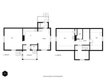 - Ilmoitettu pinta-ala on laskettu rakennuspiirroksista, alakerta n. 76m2, yläkerta n. 45,3m2, lisäksi yläkerrassa alle 160 cm korkeaa tilaa n. 25m2. Hki kaupunki kerrosalaselvityksen mukaan pääkäyttötarkoituksen mukainen kerrosala on 1. krs 84,5m2 ja 2. krs 49,5 m2, yhteensä 134 m2. Pinta-alaa ei ole tarkistusmitattu, pinta-alaan sisältyy epävarmuus. Kellarissa tekninen tila ja pieni 'hillokellari'. Lisäksi ulkorakennus (54 k-m2), missä lämmitettyä tilaa sauna, ph, kh ja lisäksi lämmittämätöntä varastotilaa ja autotalli.