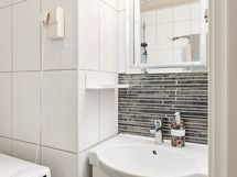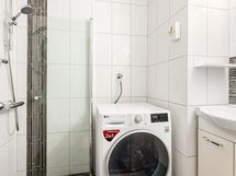 - Pesutilojen kuvaus: Suihku, peilikaappi, allaskaappi, pyyhekuivain, wc-istuin, pesukoneliitäntä ja pyykinpesukone. Lattia ja seinät laattaa, sähköinen lattialämmitys.