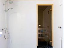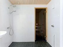 - Saunassa sähkökiuas. Suihku, pesukoneliitäntä, kiinteät valaisimet, mukavuutena lattialämmitys (sähkö) ja peilikaappi.