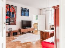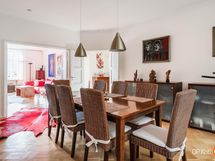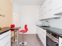 - Läpitalon huoneisto, suurin osa ikkunoista rauhalliselle yhtiön sisäpihalle. Olohuoneneen ja yhden mh:n ikkunat Runeberginkadulle.