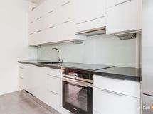 - Jääkaappipakastin, erillisuuni, induktioliesi, liesituuletin, mikroaaltouuni integroitu, astianpesukone, kaapistot Ideal Keittiöt, kiinteät valaisimet. Puristekraniitti, starlight black , saarreke