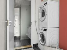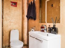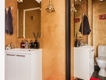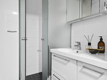 - Kylpyhuone, erillinen wc, suihku, suihkuseinä taittuvat, 2 kpl, peilit 1 kpl, peilikaappi, kaapit pyykkikaappi, allaskaappi 2 kpl, pesukoneliitäntä, kiinteät valaisimet.