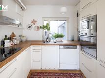 - Induktioliesi, integroitu mikroaaltouuni, kiertoilmauuni, astianpesukone, jääkaappi, pakastin, liesituuletin hormiin, kaapistot