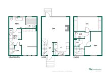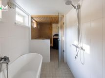 - Kylpyhuoneessa: amme, sähkösauna, suihku. Kodinhoitohuone: Peili, lavuaari, kaapistot. Erillinen WC: peili, kaapistot