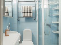 - Varustus: suihkuseinä, pesukoneliitäntä, wc-istuin, peilikaappi.