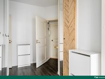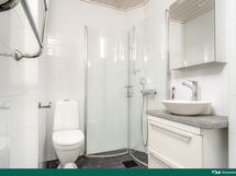 - Suihku, kääntyvät suihkuseinät, wc-istuin, lavuaari, allaskaappi, peilikaappi, pyyhekuivain, pesukoneliitäntä, lattialämmitys