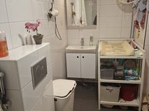 - Peilikaappi, Allaskaappi, Rättipatteri, Laattalattia, Laattaseinä, Erillinen WC, Lattialämmitys, Pesukonevalmius, Suihku,